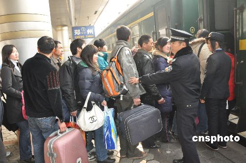 1月5日,針對今年春運(yùn)客流情況,鄭州鐵路局暨鄭州火車站提前啟動2009年春運(yùn)。為做好今年的春運(yùn)工作,鄭州鐵路局提前部署安排,精心制定臨客車底整修方案,嚴(yán)格臨客列車的質(zhì)量標(biāo)準(zhǔn)及驗(yàn)收檢查,目前28組臨客車底已經(jīng)全部整備完畢。從當(dāng)日開始,臨客車將按照春運(yùn)節(jié)前開行方案陸續(xù)投入使用。中新社發(fā) 劉書亭 攝