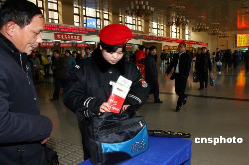 1月5日,北京火車站開始對進(jìn)入售票大廳買票的旅客實(shí)施安檢,此次主要是安檢員進(jìn)行手檢。據(jù)安檢員介紹,北京鐵路提前進(jìn)入春運(yùn)狀態(tài),車站內(nèi)的安檢工作全面加強(qiáng)。中新社發(fā) 富田 攝
