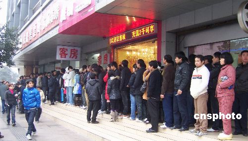 元旦剛過,浙江杭州火車站武林路售票處的買票隊伍已經(jīng)排到了售票大廳外。1月的杭州雖然寒風瑟瑟,但是歸家心切的市民依然秩序井然。中新社發(fā) 趙曄嬌 攝