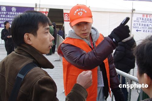 1月15日,為從容應(yīng)對上海站春運(yùn)大客流到來,上海鐵路局團(tuán)委加強(qiáng)路地聯(lián)合,從全局及地方院校招募千余名青年志愿者,經(jīng)動(dòng)員培訓(xùn)后迅速上崗,為旅客提供咨詢等服務(wù)。中新社發(fā) 陸應(yīng)果 攝