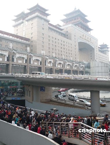 2009年1月17日,北京西站人頭攢動(dòng)、旅客如織。當(dāng)日,北京西站回家過(guò)年的“農(nóng)民工返鄉(xiāng)流、學(xué)生流、探親流”依舊強(qiáng)勁,并呈持續(xù)增長(zhǎng)的趨勢(shì)。中新社發(fā) 玉龍 攝