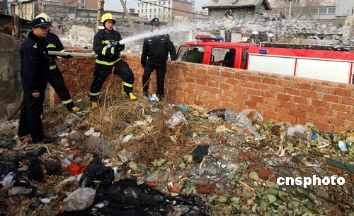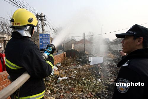 連日,北京遇大風(fēng)降溫天氣。為確保春節(jié)期間燃放煙花爆竹等消防安全,近日,北京崇文警方會(huì)同消防部門(mén)清理市民居住區(qū)內(nèi)各樓道及房前屋后的可燃物,拆除在消防通道上搭建的違章建筑,并派出消防車(chē)專(zhuān)門(mén)對(duì)前門(mén)地區(qū)重點(diǎn)部位、火災(zāi)隱患較為嚴(yán)重的院落實(shí)行人工降雨,確保春節(jié)期間消防安全。中新社發(fā) 胡建強(qiáng) 攝