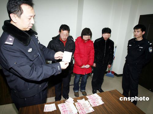春節(jié)前夕,一些不法分子為逃避打擊,采取北京站內(nèi)聯(lián)系客源,站外倒票的方法,將接頭地點轉(zhuǎn)移到崇文門附近。北京崇文警方加大巡邏防控的密度,連續(xù)抓獲8名倒賣火車票的不法分子,起獲火車票14張,非法獲利近2000元,陜西來京人員王曉龍等8人被治安拘留。中新社發(fā) 胡建強 攝