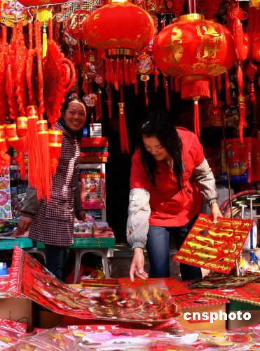 1月22日,廣西桂林商業(yè)步行街,市民在挑選年貨,選購新年飾品。春節(jié)臨近,桂林各大商場貨源充足,購銷兩旺,洋溢著濃濃的節(jié)日氣氛。中新社發(fā) 姜純 攝
