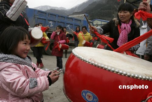 1月23日(臘月二十八),四川汶川縣映秀鎮(zhèn)在街頭吊掛起紅燈籠,給小鎮(zhèn)帶來(lái)了節(jié)日氣氛。連日來(lái),四川省藏族阿壩自治州汶川縣映秀鎮(zhèn)村民抓緊排練歌舞喜迎春節(jié)。中新社發(fā) 張曉理 攝