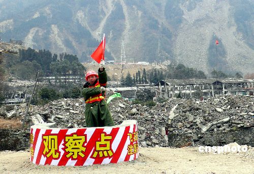 1月23日(臘月二十八),四川省都汶公路(都江堰市至汶川縣)漩口鎮(zhèn)段,一名飛石路段安全觀察員在寒風(fēng)中指揮車輛通行。在四川山區(qū)飛石路段,交通部門設(shè)置的安全觀察哨不僅保障了過往車輛的安全,還帶給人們陣陣溫暖。中新社發(fā) 張曉理 攝