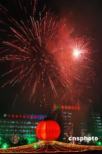 1月25日除夕夜,東北特鋼集團大連基地廣場五彩繽紛禮花綻放空中,迎接牛年到來。當晚,大連市大街小巷爆竹聲聲,人們在絢爛的煙花中迎來2009農(nóng)歷新年。中新社發(fā) 劉德斌 攝
