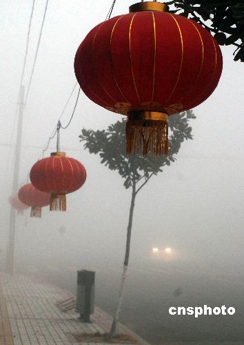 1月31日,山東省棗莊地區(qū)出現(xiàn)強濃霧天氣,能見度不足50米,當?shù)貧庀蟛块T發(fā)布大霧黃色預警信號,提醒市民安全出行。 中新社發(fā) 劉明祥 攝