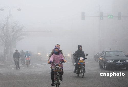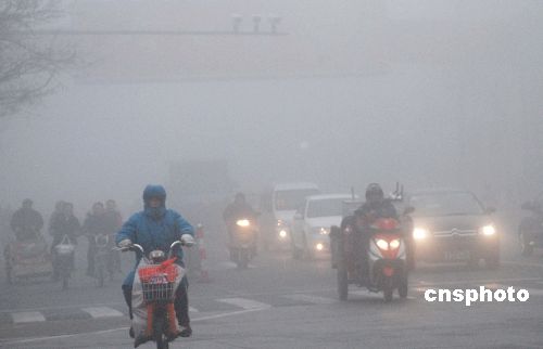 2009年2月1日(正月初七),蘇北贛榆縣境內(nèi)遭遇新春首場大霧,能見度較低,當?shù)亟煌ü膊块T迅速啟動應(yīng)急預(yù)案,組織干警疏通行人和車輛,確保行人車輛安全無事故。中新社發(fā) 朱代桂 攝