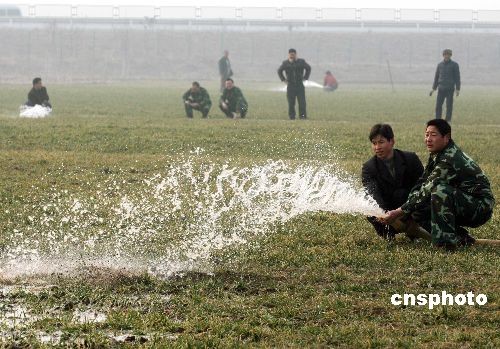 2月4日,河南省禹州市民兵預(yù)備役人員在小呂鄉(xiāng)小呂村幫助村民抗旱澆麥。當(dāng)日,河南省禹州市人民武裝部組織民兵預(yù)備役人員成立30個(gè)民兵抗旱服務(wù)隊(duì),深入到全市部分鄉(xiāng)鎮(zhèn),幫助村民抗旱澆麥。據(jù)悉,2月3日,河南省軍區(qū)下發(fā)通知,要求全區(qū)各單位迅速啟動(dòng)應(yīng)急預(yù)案,充實(shí)抗旱裝備器材,組織相關(guān)業(yè)務(wù)技能培訓(xùn),主動(dòng)與地方政府及水利、氣象等部門溝通聯(lián)系,迅速組織民兵預(yù)備役人員投入抗旱澆麥。中新社發(fā) 牛書培 攝