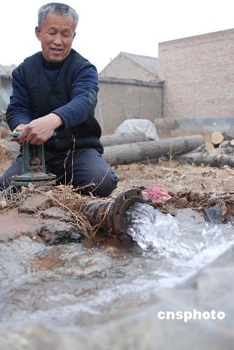 2009年2月4日,山西小麥產(chǎn)地運城新絳縣農(nóng)民在全力以赴進行抗旱工作。入冬后,山西省受旱面積達3274萬畝,其中山西小麥主產(chǎn)區(qū)運城、臨汾兩地農(nóng)作物受旱面積達634萬畝,同時有106萬群眾及19萬頭牲畜出現(xiàn)飲水難問題。2月3日,山西省政府防汛抗旱指揮部已發(fā)布干旱橙色預(yù)警(Ⅱ級)并啟動響應(yīng)行動。山西省財政緊急下?lián)芸购蒂Y金1000萬元。中新社發(fā) 高新生 攝