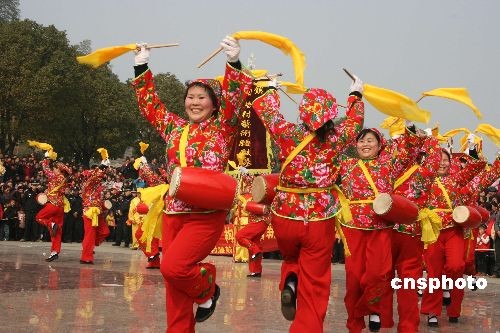 2月9日下午,來自杭州市桐廬縣各鄉(xiāng)鎮(zhèn)、街道的16支腰鼓隊(duì)、上千名腰鼓手齊聚桐廬縣城中心廣場(chǎng),為現(xiàn)場(chǎng)數(shù)萬(wàn)名群眾帶來了一波波精彩的腰鼓表演,在元宵佳節(jié)為桐廬縣百姓送上了一份歡快的“文化大餐”。中新社發(fā) 張潔 攝