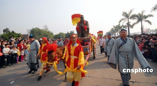 2月9日,廣東德慶依古制進(jìn)行公祭、民祭儀式,萬人肅穆,向孔子圣像朝拜,為該縣鬧元宵活動添上濃厚的儒家文化韻味。中新社發(fā) 談細(xì)育 攝