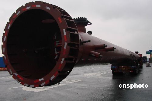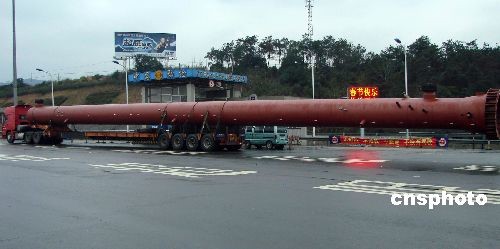 2月16日,在浙江湖州高速父子嶺省際卡點(diǎn)處,一輛大型半掛貨車載著長(zhǎng)約50米,酷似大炮的大型鋼管欲駛出收費(fèi)通道。發(fā)現(xiàn)此情況后,高速交警立即示意駕駛員停車接受檢查,不料駕駛員非但沒(méi)有將車停下,反而提速欲沖卡逃跑,索性被交警及時(shí)攔截。中新社發(fā) 袁爽 攝