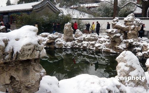 2月19日,北京普降瑞雪,白雪皚皚的京城吸引眾多游客拍攝雪景。圖為雪后的京城皇家園林北海。中新社發(fā) 錢興強(qiáng) 攝