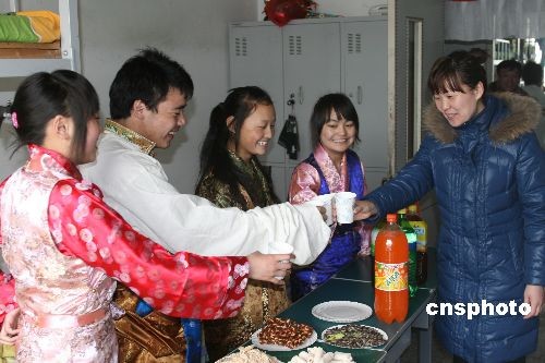 2月24日,中國(guó)藏歷年三十,在天津紅光中學(xué)就讀的藏族學(xué)生穿起民族服裝,與老師、同學(xué)一起迎接藏歷新年。天津紅光中學(xué)是天津唯一一所藏漢共讀的民族教育學(xué)校,截至目前,已有3500余名藏族學(xué)生從這所學(xué)校初、高中畢業(yè),其中1600余人考入大專院校深造。中新社發(fā) 郭曉帆 攝