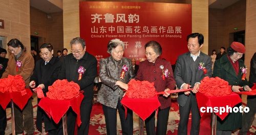 2009年2月25日上午,為慶祝全國“兩會”召開,迎接祖國60周年華誕,由中共山東省委宣傳部、山東省文化廳、山東省文聯(lián)主辦,山東省美協(xié)承辦的“齊魯風韻--山東中國畫花鳥畫作品展”在中國美術(shù)館開幕。開幕式由山東省美協(xié)常務(wù)副主席兼秘書長孔維克主持,全國人大原副委員長何魯麗、全國政協(xié)原副主席郝建秀、中共中央組織部原部長張全景、文化部副部長王文章、山東省人大副主任溫孚江等領(lǐng)導出席了開幕式。中新社發(fā) 王保勝 攝
