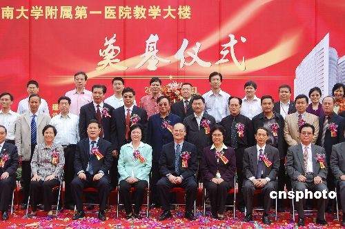 二月二十八日上午,暨南大學(xué)附屬第一醫(yī)院教學(xué)大樓奠基,國務(wù)院僑辦副主任趙陽與廣東省副省長雷于藍(lán)出席奠基典禮。中新社發(fā) 柯小軍 攝