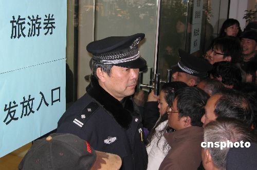 3月1日,杭州旅游部門開始面向上海市民發(fā)放13.5萬(wàn)份、總面值達(dá)900萬(wàn)元人民幣的“杭州旅游消費(fèi)券”。在發(fā)放點(diǎn)之一的杭州銀行上海分行營(yíng)業(yè)部,消費(fèi)券發(fā)放遭到上海市民哄搶,場(chǎng)面一度混亂。為促進(jìn)杭州旅游業(yè)推廣,由杭州市旅委發(fā)行的“消費(fèi)券”可在180家指定景點(diǎn)和商家使用,游客每消費(fèi)40元可抵扣10元,面向廣大市民均可申請(qǐng)領(lǐng)取。此次面向全國(guó)統(tǒng)一發(fā)放的杭州旅游消費(fèi)券為240萬(wàn)套,總額達(dá)到1.5億元。中新社發(fā) 李佳佳 攝