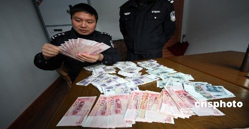 近日,在全國(guó)公安機(jī)關(guān)打擊假幣“09”行動(dòng)中,浙江黃巖警方成功抓獲一名非法持有假幣的犯罪嫌疑人,繳獲了編號(hào)為“HD、HB”的假鈔一萬(wàn)七千多元。目前,犯罪嫌疑人劉某已經(jīng)被刑事拘留,案件仍在進(jìn)一步審查中。中新社發(fā) 袁爽 攝