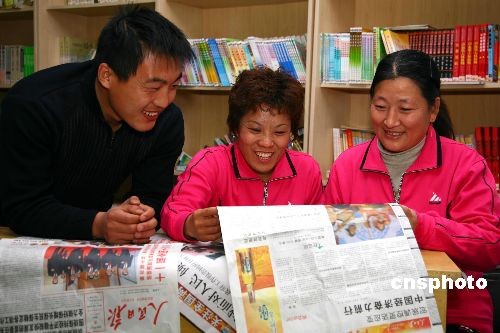 3月7日,北京市懷柔區(qū)雁棲鎮(zhèn)陳各莊村村民正在村中“益民書屋”閱讀“全國兩會”專題報道內(nèi)容。全國“兩會”召開以來,京郊農(nóng)民十分關(guān)注特別是有關(guān)“三農(nóng)”議題,黨中央關(guān)于“三農(nóng)”的有關(guān)新政策,極大的鼓舞了京郊農(nóng)民艱苦創(chuàng)業(yè)的勇氣,堅定了農(nóng)民勤勞致富奔小康的信心。中新社發(fā) 卜向東 攝