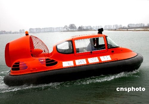 3月10日,國(guó)內(nèi)首批國(guó)產(chǎn)氣墊船在東海縣成功下線后,4艘氣墊船已到達(dá)黃河內(nèi)蒙古段的凌訊排除第一線的冰凌區(qū),執(zhí)行“破凌”任務(wù)。 中新社發(fā) 魏愛(ài)華 攝