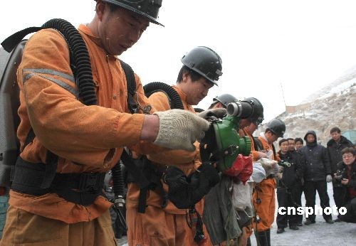 3月12日,位于甘肅省武威市天?h境內(nèi)的一座煤礦發(fā)生事故,被困井下的6名當(dāng)班工作人員全部遇難。該煤礦屬于天祝隆德煤業(yè)有限責(zé)任公司所有,證照齊全,1996年建成投產(chǎn),年設(shè)計(jì)生產(chǎn)能力6萬噸。今年2月13日,該礦提出申請(qǐng)井下維修報(bào)告,16日獲批準(zhǔn)進(jìn)行維修,至事故發(fā)生時(shí)仍在維修整改之中,并未投入生產(chǎn)。圖為救援人員作下井前的準(zhǔn)備工作。中新社發(fā) 殷春永 攝