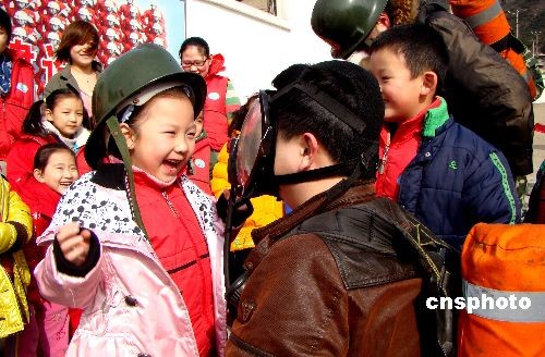 3月13日,江蘇連云港市公安連云消防大隊舉辦了“警營對外開放日”活動,邀請老師、家長、小朋友前來參觀。小朋友們參觀了消防設(shè)施,聽消防隊員講解消防知識,體驗著裝,試戴呼吸器,親身感受警察風采。警民共同迎接即將到來的“3·14國際警察日”。中新社發(fā) lyg王春 攝
