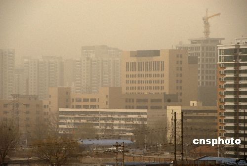 3月15日13時(shí)左右,北京城區(qū)出現(xiàn)浮塵,能見度降低。據(jù)北京市氣象臺(tái)最新消息,北京今天受上游沙塵天氣影響,出現(xiàn)浮塵天氣。中新社發(fā) 草木 攝