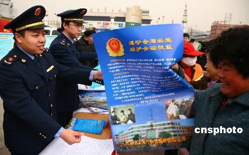 3月15日,北京市懷柔區(qū)消費者協(xié)會組織工商、質監(jiān)、商務、司法等部門,在街頭舉辦大型“315國際消費者權益日”宣傳咨詢活動,一萬多名消費者到現場咨詢相關“消費維權”方面的知識,領取有關宣傳材料。中新社發(fā) 卜向東 攝