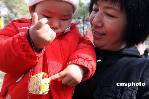 三月二十日,是中國二十四節(jié)氣中的春分。北京春分朝陽民俗文化藝術(shù)節(jié)閃亮登場,為中國這一第一批非物質(zhì)文化遺產(chǎn)的傳承提供了展示的天地。北京春分朝陽民俗文化藝術(shù)節(jié)于二零零七年開始首創(chuàng),直至今年已經(jīng)舉辦了三屆,由于內(nèi)容豐富多彩,為百姓喜聞樂見而深受歡迎。圖為北京春分朝陽民俗文化藝術(shù)節(jié)吸引市民。中新社發(fā) 任海霞 攝