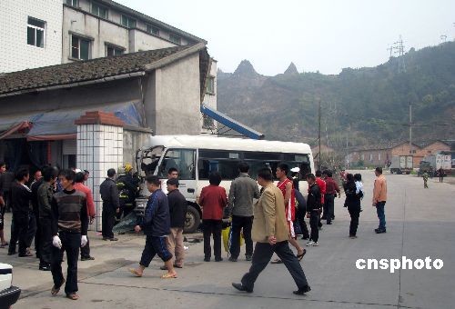 三月二十一日下午二時左右,福建寧德市區(qū)一輛載有十余人的公交車因緊急剎車躲避前方突然掉頭的小車,撞上了路旁圍墻,造成至少兩人受傷。當(dāng)?shù)叵馈⒔痪⑨t(yī)療等部門聞訊迅速趕到現(xiàn)場進(jìn)行處置,很快救出被困人員。中新社發(fā) 張彩林 攝