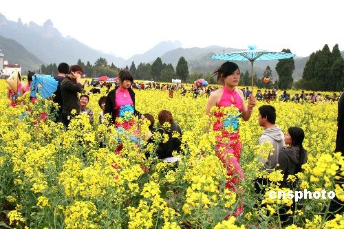 3月22日,浙江省仙居縣10萬畝油菜花田陸續(xù)開放,成片的金黃色油菜花吸引了眾多中外游客踏春賞花。中新社發(fā) 金煒民 攝