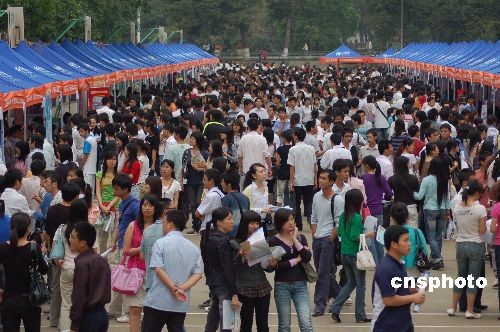 3月24日,廣西舉行促進(jìn)大學(xué)畢業(yè)生就業(yè)公共服務(wù)系列活動(dòng)啟動(dòng)儀式暨廣西民族大學(xué)專場(chǎng)招聘會(huì)。中國(guó)廣西人才市場(chǎng)將招聘會(huì)設(shè)在了大學(xué)校園,約5000名即將畢業(yè)的大學(xué)生參加招聘會(huì)。據(jù)悉,2009年在廣西畢業(yè)的大學(xué)生預(yù)計(jì)達(dá)13萬人,就業(yè)壓力空前。為此,廣西人事廳將采取多種措施,在廣西各大學(xué)進(jìn)行專場(chǎng)招聘和一系列就業(yè)公共服務(wù)活動(dòng),零距離為畢業(yè)生提供服務(wù)。中新社發(fā) 劉萬強(qiáng) 攝