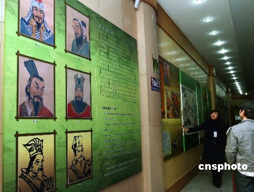 以宣傳2009中國(guó)花卉博覽會(huì)為主題的“盛世花開絲綢路全國(guó)行”活動(dòng),3月24日到達(dá)古九州之一的山東兗州市,隊(duì)員們?cè)趦贾莶┪镳^了解兗州歷史。根《禹貢》記載,歷史上大禹定九州分別為“冀州、兗州、青州、徐州、揚(yáng)州、荊州、豫州、梁州、雍州”,相傳當(dāng)年兗州地區(qū)是大禹治水活動(dòng)的主要區(qū)域。中新社發(fā) 宋吉河 攝