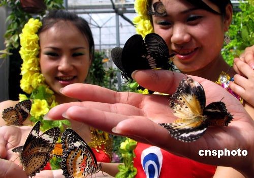 4月1日,位于北京植物園內(nèi)的熱帶蝴蝶生態(tài)園正式開(kāi)園,數(shù)千只色彩斑斕的蝴蝶和數(shù)十種千奇百怪的蟲(chóng)子將正式與游客見(jiàn)面。熱帶生態(tài)蝴蝶園是中國(guó)內(nèi)地首次從馬來(lái)西亞檳城蝴蝶園進(jìn)口的集昆蟲(chóng)蝴蝶標(biāo)本、活體昆蟲(chóng)展示和活蝴蝶放飛為一體的具有知識(shí)性、趣味性、科普性、教育性的昆蟲(chóng)蝴蝶科普生態(tài)園,也是國(guó)內(nèi)第一家進(jìn)口的活體蝴蝶和昆蟲(chóng)品種最全、規(guī)模最大、蝴蝶昆蟲(chóng)標(biāo)本最多科普展。熱帶蝴蝶生態(tài)園共分為三個(gè)展區(qū):蝴蝶館、昆蟲(chóng)館、科普標(biāo)本館。圖為蝴蝶生態(tài)園吸引游客。中新社發(fā) 錢(qián)興強(qiáng) 攝