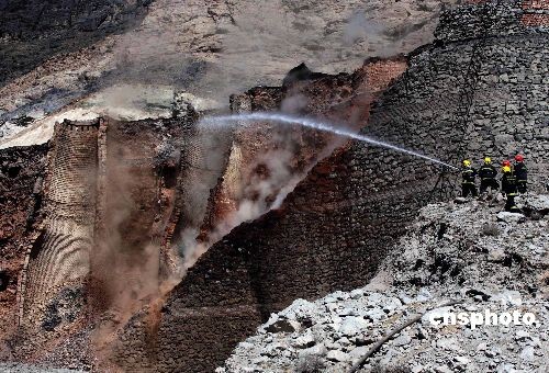 4月3日早晨9時(shí)許,新疆烏魯木齊市達(dá)坂城區(qū)一石灰窯發(fā)生塌方事故,正在作業(yè)的5名工人被埋。事故發(fā)生后,烏魯木齊市消防指揮中心迅速出動(dòng)3輛消防車,15名消防人員前去救援。據(jù)現(xiàn)場(chǎng)救援的消防人員分析,坍塌的石灰窯窯口溫度仍在四五百攝氏度以上,除1名工人成功逃脫,其余4名被埋人員生還希望渺茫。中新社發(fā) 劉新 攝