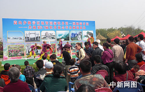 中新網(wǎng)洛陽四月十四日電 (記者趙敏 朱曉娟 孫春霞)本月中旬,河南嵩山少林寺景區(qū)借洛陽牡丹“花”會(huì)契機(jī),率領(lǐng)武僧表演團(tuán)在洛陽龍門石窟及國家牡丹園內(nèi)展示少林功夫,“武”動(dòng)洛陽城,吸引海內(nèi)外游人。