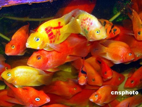 日前,杭州吳山廣場(chǎng)“紋身魚(yú)”火爆熱賣(mài),魚(yú)身上分別紋上了“生”、“意”、“興”、“隆”、“恭”、“喜”、“發(fā)”、“財(cái)”的漢字,據(jù)商家介紹,剛引進(jìn)的時(shí)候每只只賣(mài)20多元,現(xiàn)在賣(mài)到100元一只,380元四只的價(jià)格,仍然供不應(yīng)求,杭州市民對(duì)這種魚(yú)似乎格外的喜歡,讓商家也很意外。中新社發(fā) 王磊 攝