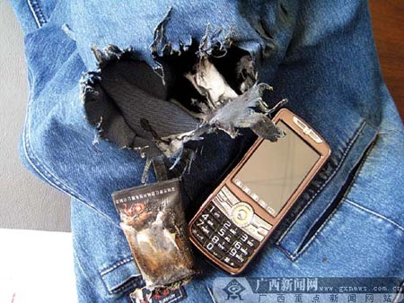 手機(jī)新電池炸傷消費(fèi)者屁股 牛仔褲被炸出大洞