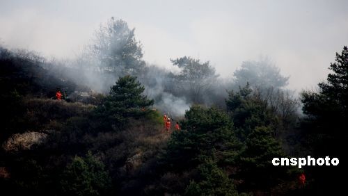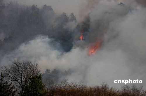 2009年4月17日下午,山西省盂縣上社鎮(zhèn)磨盤村磨盤山發(fā)生森林火災(zāi),因風(fēng)力過大,大火肆虐,整個森林煙霧彌漫。森林火災(zāi)發(fā)生后,盂縣人民政府和當(dāng)?shù)赜嘘P(guān)部門調(diào)集力量迅速到現(xiàn)場。經(jīng)過緊急撲救,截止下午5時(shí)30分火情已基本得到控制,暫無人員傷亡。目前,起火原因正在調(diào)查中。中新社發(fā) 程瑜