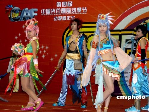 4月30日,第四屆中國(guó)“光谷”國(guó)際動(dòng)漫節(jié)在武漢開幕。據(jù)了解,本屆動(dòng)漫節(jié)規(guī)?涨埃3萬平方米的活動(dòng)現(xiàn)場(chǎng)和近千展臺(tái)超過前三屆,還吸引了盛大、雷柏、固鉑、麥當(dāng)勞等國(guó)際著名公司和武漢“光谷”知名動(dòng)漫企業(yè)參加。本屆動(dòng)漫節(jié)將以嘉年華的形式與廣大市民見面,由以往的“看”提升到“玩”,除了保留以往的COSPLAY大賽和激光表演等經(jīng)典項(xiàng)目,還特別推出了電競(jìng)產(chǎn)品迪士尼“魔幻飛板”和兩岸三地動(dòng)漫音樂社團(tuán)同臺(tái)獻(xiàn)藝的動(dòng)漫音樂會(huì)等九大娛樂、競(jìng)賽項(xiàng)目。中新社發(fā) 楚天行 攝