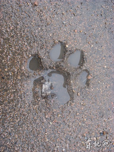 4月21日15時許,八五二農(nóng)場四名林業(yè)工人在駕車回家途中,看見一龐大動物從樹林鉆出,走在田間路上,因受車輛驚嚇而迅速鉆進了樹林。據(jù)林業(yè)工人描述,這一龐大動物長約2米,高有1.2米左右,身粗尾長,身上花紋清晰可見,當時四個人都認為看到的應該是老虎,并在沙石路上找到了留下的爪印及體毛,隨后趕到的農(nóng)場新聞工作者拍下了爪印,而并非之前媒體所報道的背影。