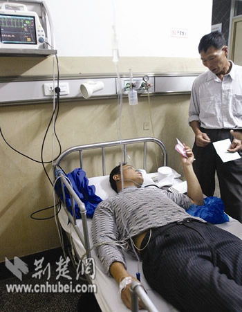 昨日,記者在仙桃市人民醫(yī)院見(jiàn)到了3名癥狀較重的患者;颊咄跸让舴Q,昨日凌晨1時(shí)許,他突然開(kāi)始上吐下瀉,四肢無(wú)力。在家硬撐了一夜后,昨日清早,他被家人送到醫(yī)院。他只聽(tīng)醫(yī)生說(shuō)是食物中毒,跟前日中午參加的一場(chǎng)婚宴有關(guān)。
