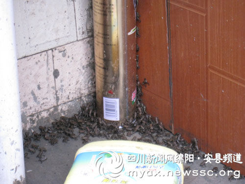 前日一早,家住綿陽安縣桑棗鎮(zhèn)香溪村4組的席興國打開家門,瞬間被眼前的景象嚇傻了:一眼望去,在視線所能及的范圍,地面上密密麻麻地聚集了小拇指般大小、黑壓壓一片小蟾蜍,要想出去根本沒法下腳。再一探頭,只見院子里、路上、鄰居房子周圍都被上百萬只蟾蜍包圍了。如此異常現(xiàn)象,村民擔心為地震前兆,相關(guān)部門正在進一步調(diào)查當中。