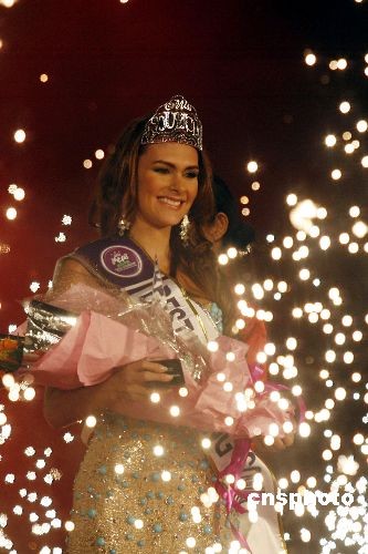 3月25日晚,委內(nèi)瑞拉小姐Maria Lourdes獲得最佳晚裝小姐單項(xiàng)賽大獎(jiǎng)。當(dāng)晚,2008國際旅游小姐冠軍總決賽最佳晚裝小姐單項(xiàng)賽在河南鄭州舉行,來自115個(gè)國家和地區(qū)的佳麗參加了角逐。中新社發(fā) 慎重 攝