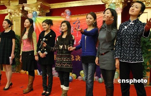 12月24日晚,圣誕平安夜之際,正在北京參加2008世界亞裔小姐大賽中國(guó)區(qū)總決賽的佳麗們上演一臺(tái)豐富多采的圣誕泳裝秀,佳麗們分別以泳裝秀、歌舞、小品、朗誦等不同形式的節(jié)目歡度圣誕節(jié)。圖為來自四川地震災(zāi)區(qū)的10位佳麗圣誕平安夜真情演唱《擁有愛》。中新社發(fā) 錢興強(qiáng) 攝
