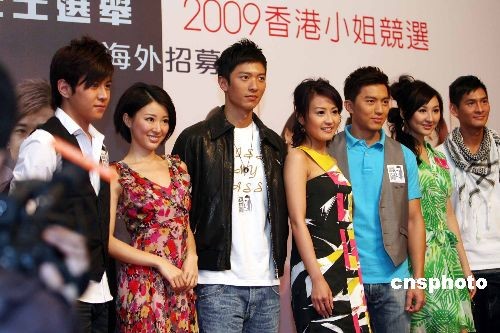 香港無(wú)線電視舉辦一年一度的香港小姐選舉及香港先生選舉即將召開(kāi),十六日,香港無(wú)線電視舉行記者會(huì),公布海外招募行動(dòng)全面展開(kāi)。港男高鈞賢、港姐亞軍陳倩揚(yáng)等一眾香港先生及應(yīng)屆香港小姐出席活動(dòng)造勢(shì)宣傳。中新社發(fā) 洪少葵 攝