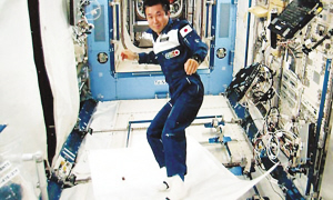 日本宇航員若田光一在國(guó)際空間站上由日本建造的“希望”號(hào)實(shí)驗(yàn)艙內(nèi)試驗(yàn)了毯上飛行以及零重力條件下滴眼藥水等。據(jù)報(bào)道,日本宇宙航空研究開(kāi)發(fā)機(jī)構(gòu)已將若田5月15日的“飛毯”表演視頻公之于眾。畫面顯示,現(xiàn)年45歲的若田站在一塊白色布單上,就像單板滑雪一樣平穩(wěn)地滑過(guò)國(guó)際空間站上的一個(gè)實(shí)驗(yàn)艙。若田通過(guò)麥克風(fēng)說(shuō):“我在這個(gè)‘魔毯’飛行中使用膠帶固定雙腳,以便能站在上面!