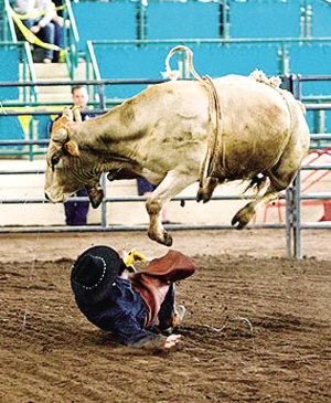 據(jù)英國《太陽報(bào)》、《每日鏡報(bào)》7月7日報(bào)道,日前美國加利福尼亞州一年一度的放牧人競技會(huì)在加州圣迭戈舉行。與往年一樣,騎公牛表演仍是競技會(huì)上最激動(dòng)人心的表演。不過,今年的騎公牛表演卻發(fā)生意外一幕,一頭狂躁的公牛把一名年邁的騎手掀翻在地,飛蹄狂踩,所幸在工作人員幫助下這名騎手只是輕微受傷。